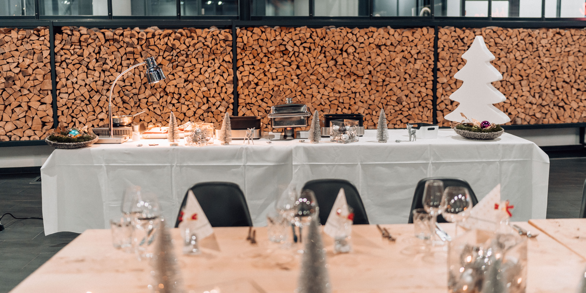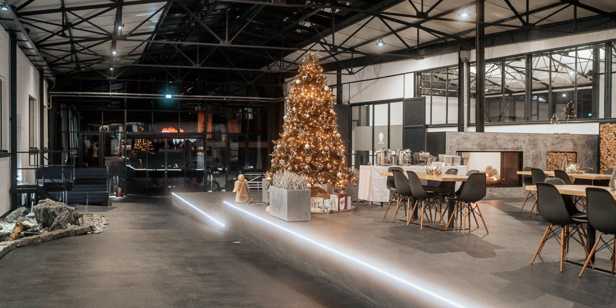 Verlasse Dich sich auf ein stilvolles, weihnachtlich dekoriertes Industrieloft. Die festliche Kulisse schafft sofort Atmosphäre und gibt Deinem Event einen hochwertigen Rahmen.
